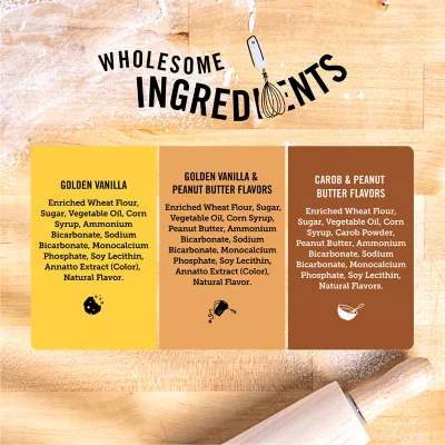 - Crunchy and tasty sandwich cookie multi-pack with delicious vanilla, carob, and peanut butter flavors