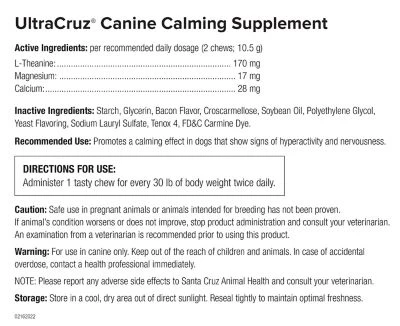 - Recommended for dogs exhibiting nervousness, hyperactivity, discontentment or negatively responding to environmentally-induced stress