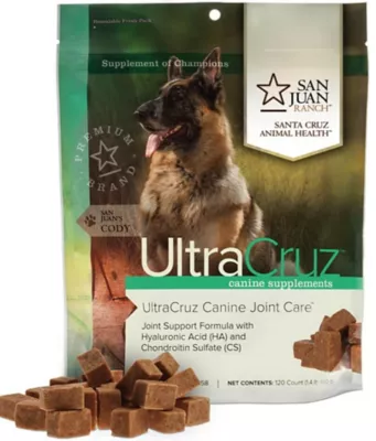 UltraCruz Canine Joint Supplement for Dogs is a joint supplement for dogs that provides a balanced combination of key ingredients to provide factors for bone development and building of connective tissue. These tasty chews may be especially beneficial for hard working dogs with high performance demands.