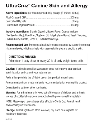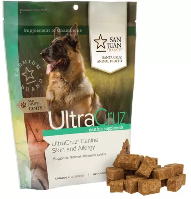 UltraCruz Canine Skin and Allergy Supplement for Dogs is a powerful supplement designed to help provide relief from seasonal allergies. With a potent blend of active ingredients, such as Omega-3 Docosahexaenoic Acid (DHA) and Quercetin, this unique formula is helpful in maintaining normal histamine levels.
