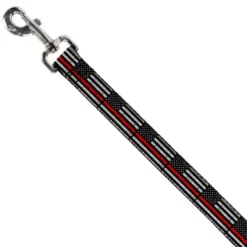 Buckle-Down Thin Red Line Flag Weathered Dog Leash, 1 In. X 6 Ft., Black/Gray/Red