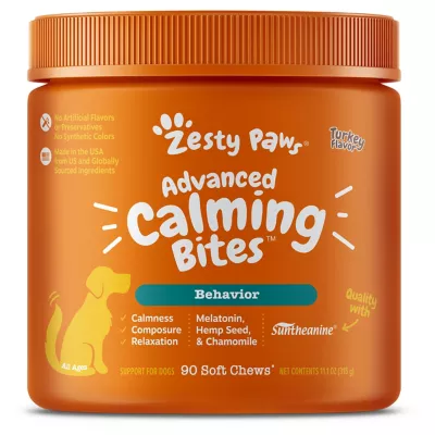 - Advanced Calming Bites, in a tasty turkey flavor are a great way to help dogs with normal stress, plus nervous and hyperactive behavior for storms, car rides, firework displays, and more.